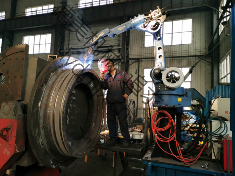 使用焊接機器人進行PTA干燥機大型密封焊接作業...
